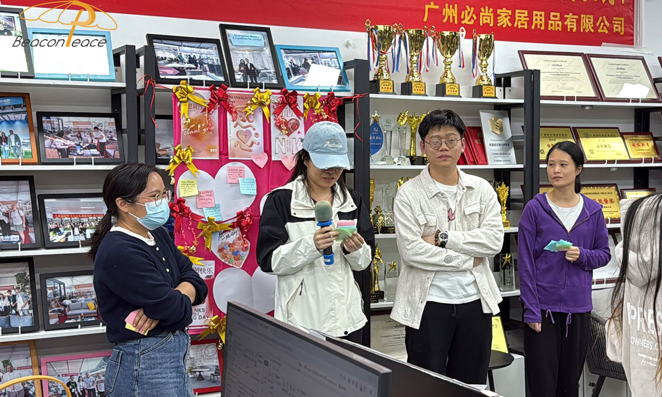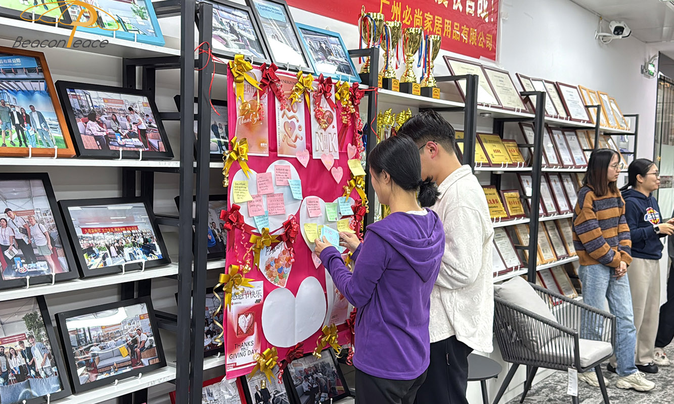 On the afternoon of November 28, 2025, Beacon Peace Outdoor Furniture Company held a warm and meaningful Thanksgiving event. As the festive atmosphere grew stronger, the company team, customers, and partners gathered together to celebrate this traditional holiday, express gratitude for the support and companionship of the past year, and look forward to a brighter future of cooperation and development.