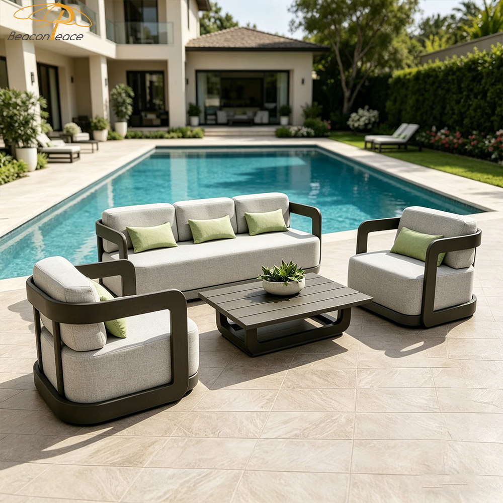 NEW-4102 All Weather Outdoor Wooden Furniture Hotel Village Poolside Terrace Teak Wood Sectional Garden Sofa Set |