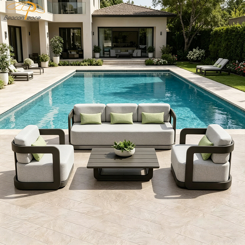 All Weather Outdoor Wooden Furniture Hotel Village Poolside Terrace Teak Wood Sectional Garden Sofa SetМинимальный заказ :