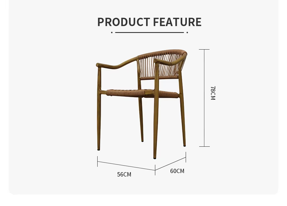 The BP4064 outdoor aluminum alloy rattan dining chair offers you a brand new way to enjoy outdoor leisure! This chair features an aluminum alloy frame with an aluminum brushed wood grain finish, making it lightweight and durable. The rattan-woven backrest and seat provide excellent comfort, while the armrests allow you to relax easily in any setting. It's the perfect choice for picnics, camping, or relaxing on your balcony.