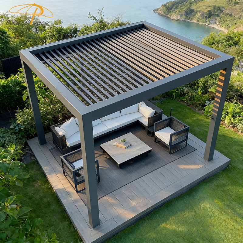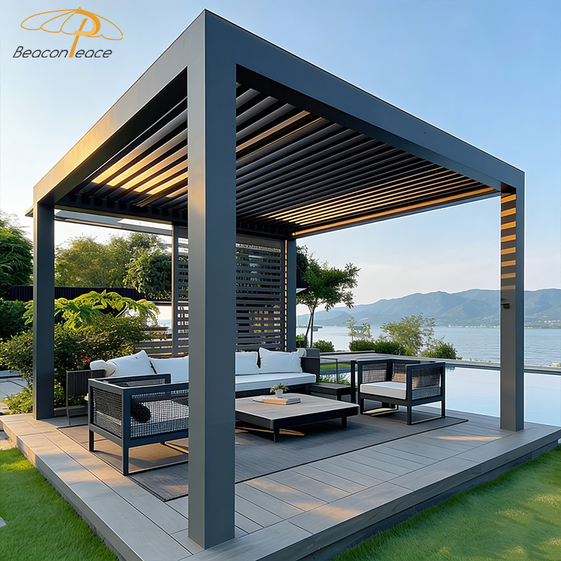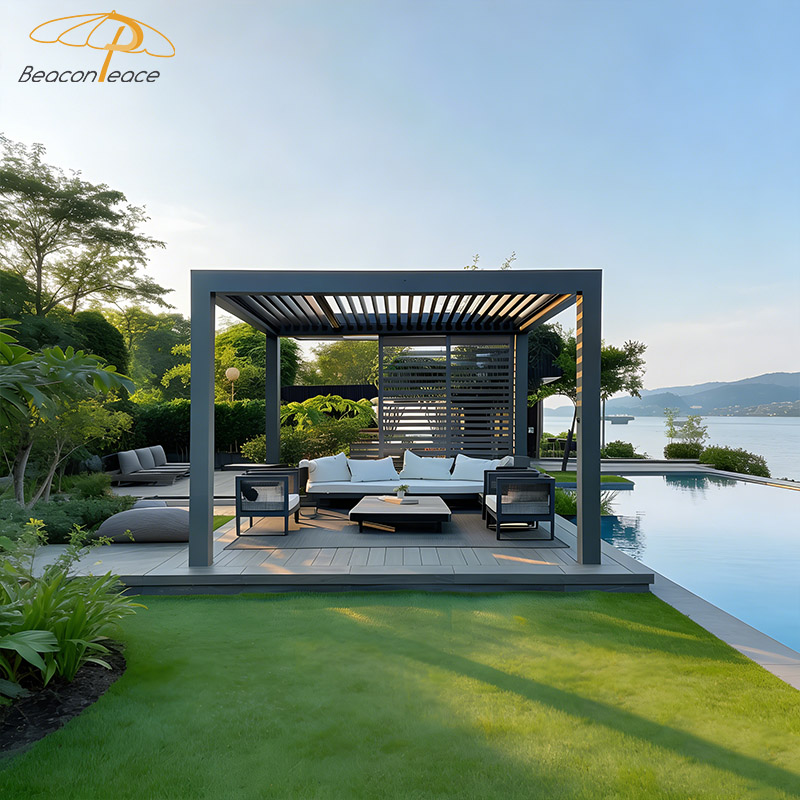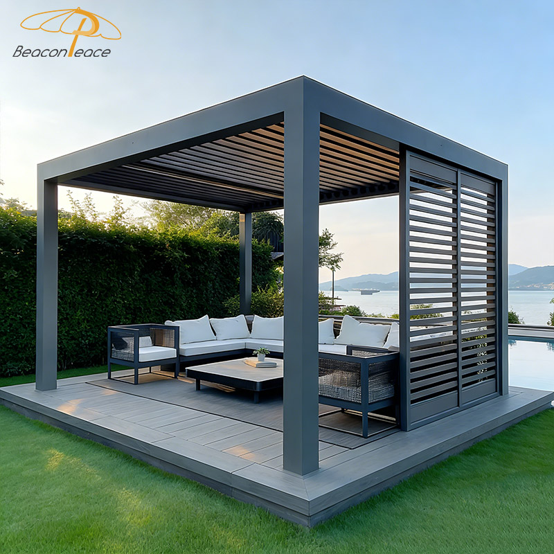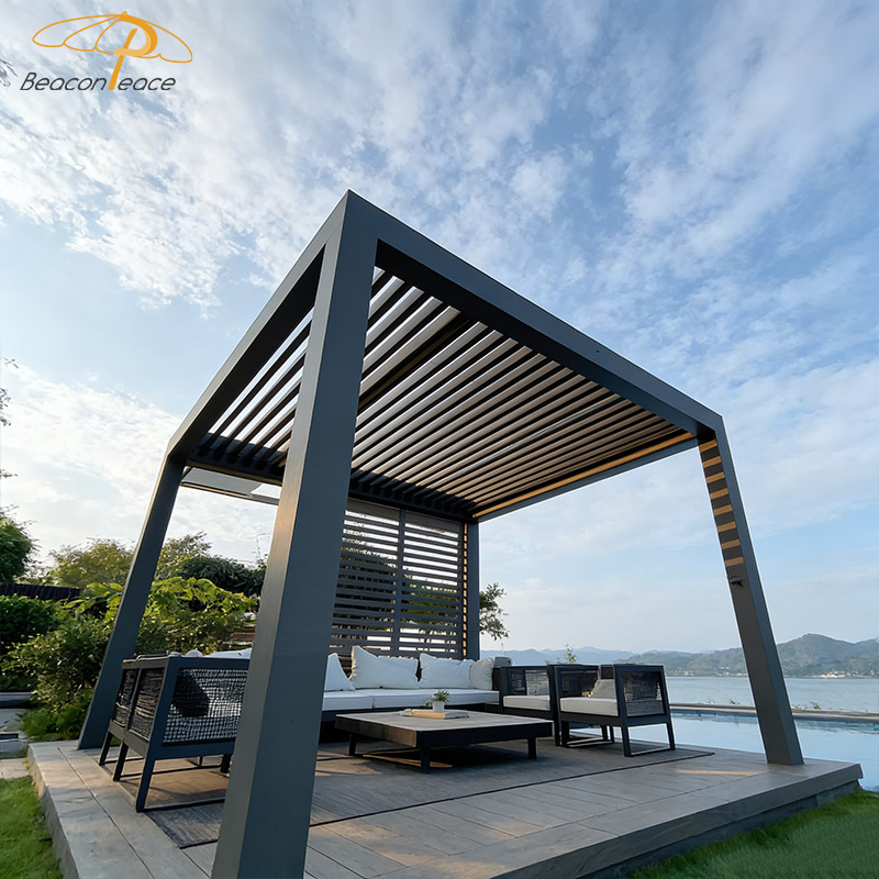 BP8709 Modern Outdoor Furniture Resort Villa Courtayrd Terrace Aluminum Louvered Pergola Gazebo Pavilion |