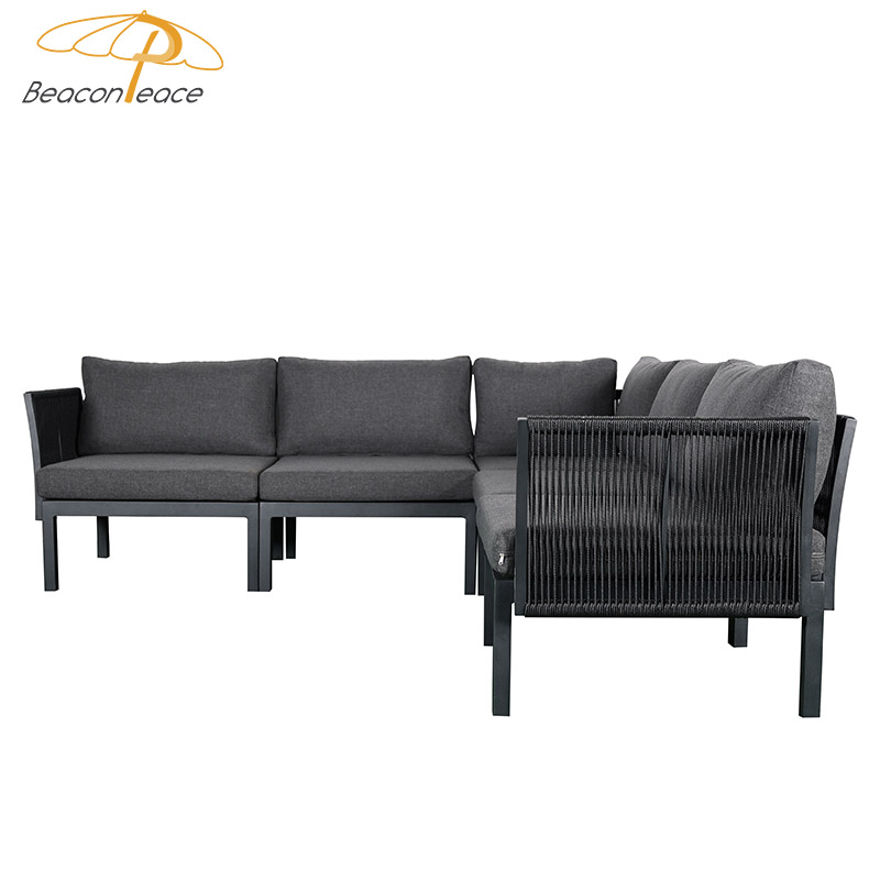 BP4109 Modern Outdoor Garden Furniture Aluminium Frame L Shape Sectional Rattan Patio Sofa Set |