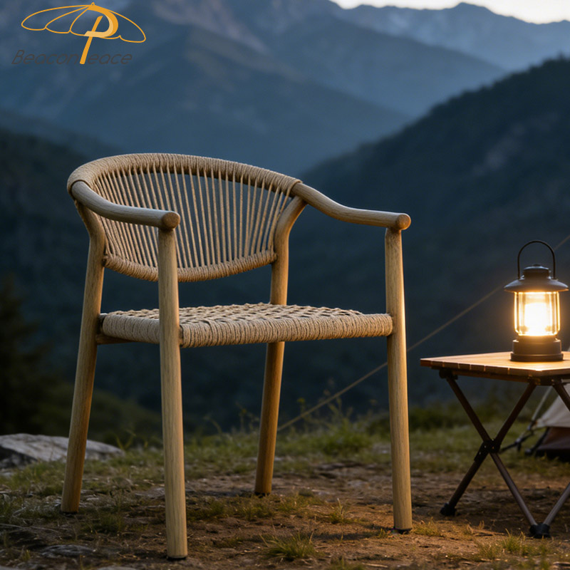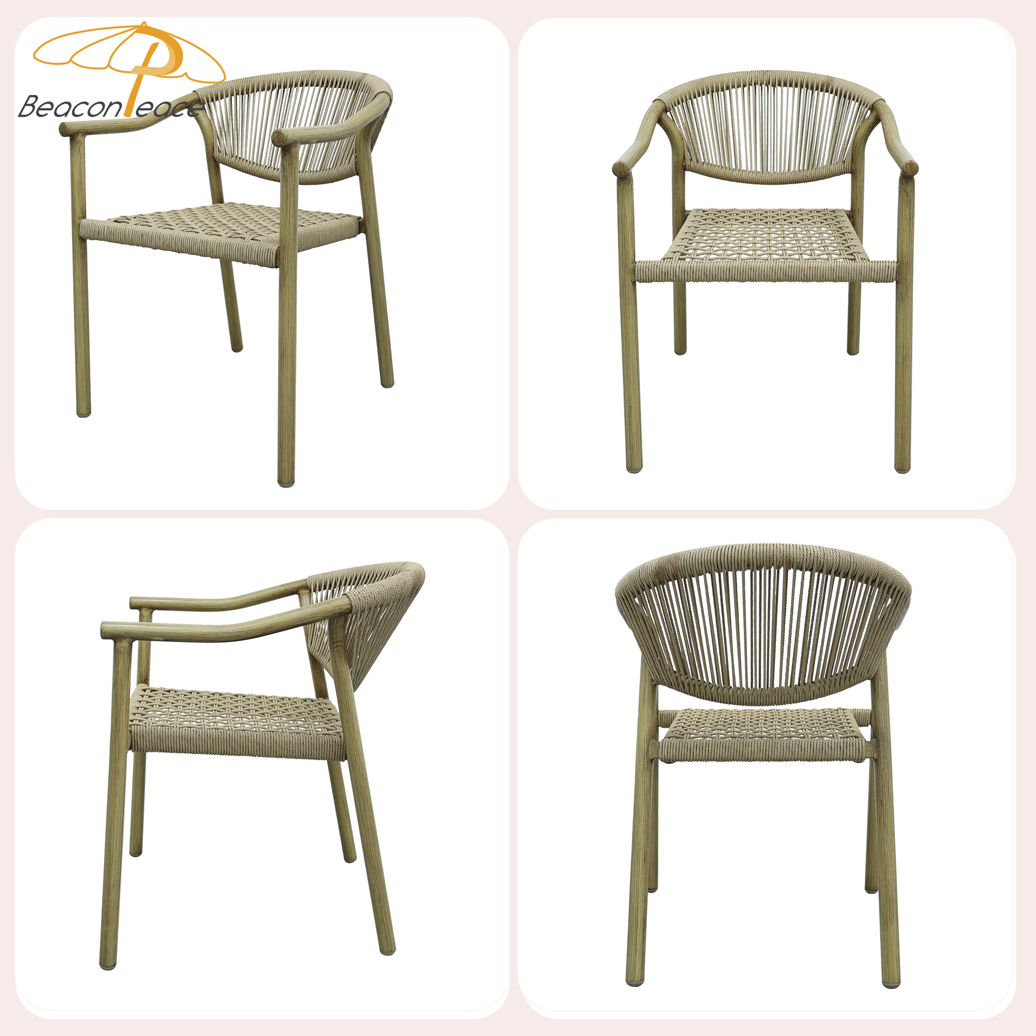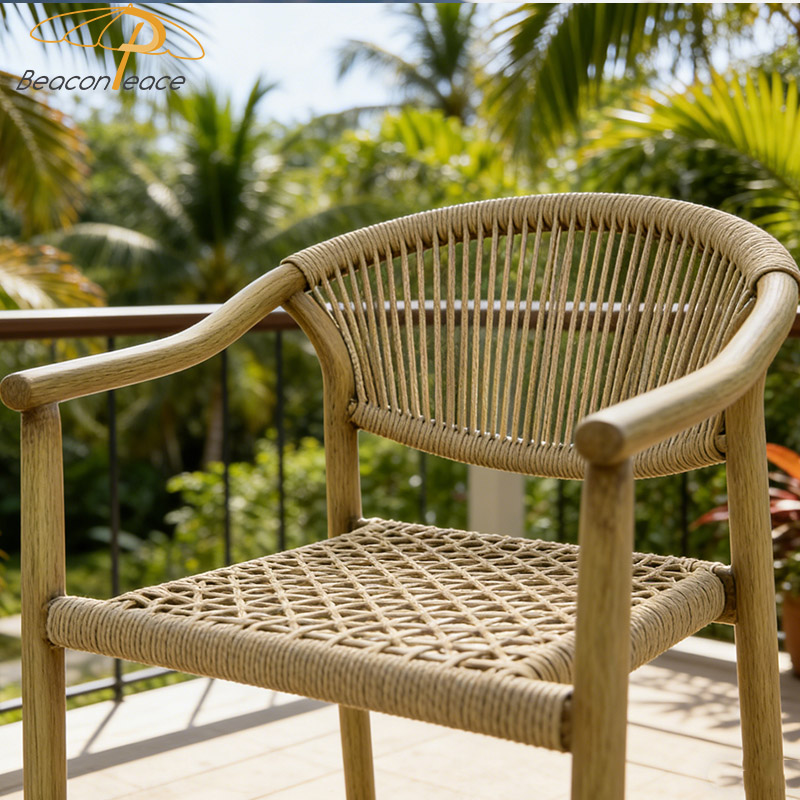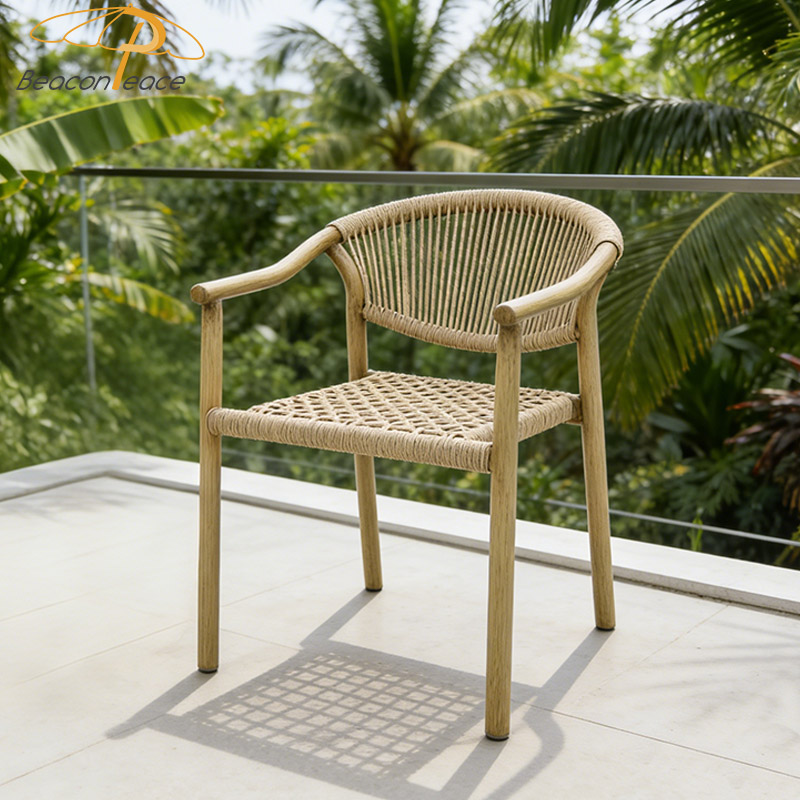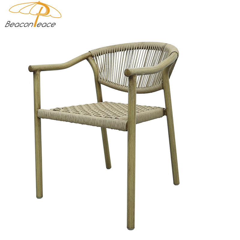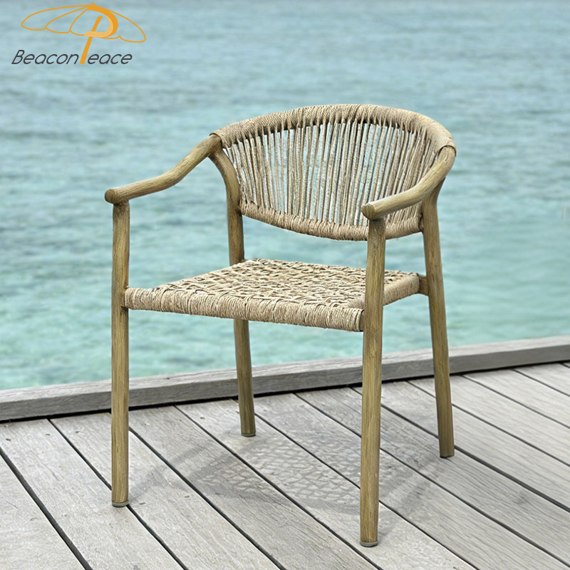 BP8572 Modern Wood Grain Outdoor Furniture Aluminum Stackable Outdoor Rattan Garden Dining Chair |