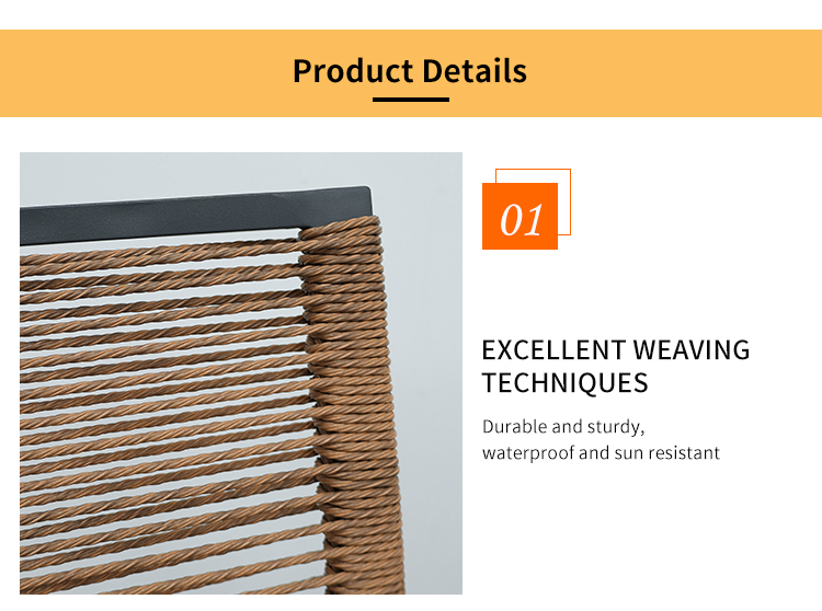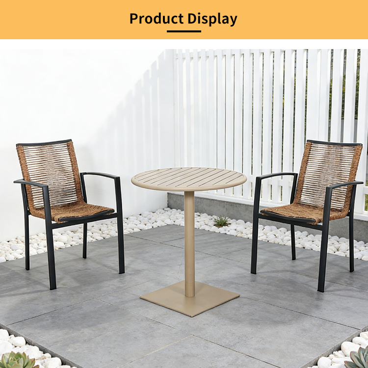 Table:aluminum frame with powder coated finish Chair:aluminum frame+outdoor rope weaving |
