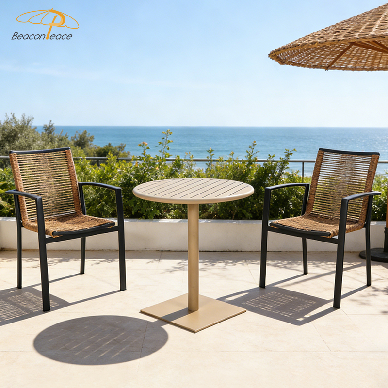 BP4032&2040 Nordic Leisure Outdoor Aluminium Furniture Round Table Patio Garden Rattan Dining Set for Restaurant |