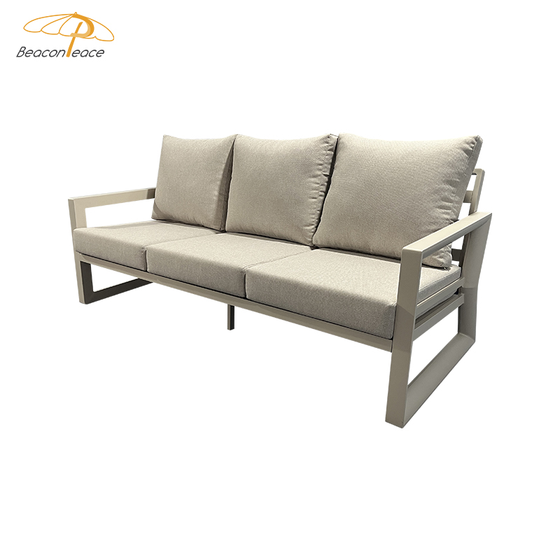 This BP8521 outdoor sofa set features a sturdy aluminum alloy frame that is corrosion-resistant, rust-proof, lightweight, and durable—standing up effortlessly to the rigors of outdoor sun and rain. The accompanying coffee table is topped with a high-quality poly-wood surface, offering a natural texture that is both wear-resistant and easy to clean. Complete with high-resilience, waterproof seat and back cushions, the set provides a plush, comfortable seating experience while remaining moisture-proof and weather-resistant. Easily adaptable to various outdoor settings—including courtyards, patios, and balconies—this set helps you create a durable yet comfortable outdoor leisure space that stands the test of time.